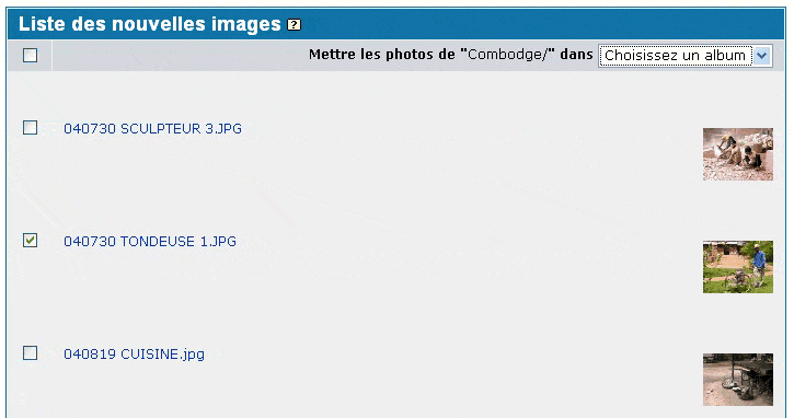 Un fois que vous avez téléchargé vos photos par FTP, cliquez sur le bouton "Chargement FTP" L'ajout par lots se fait en trois étapes: