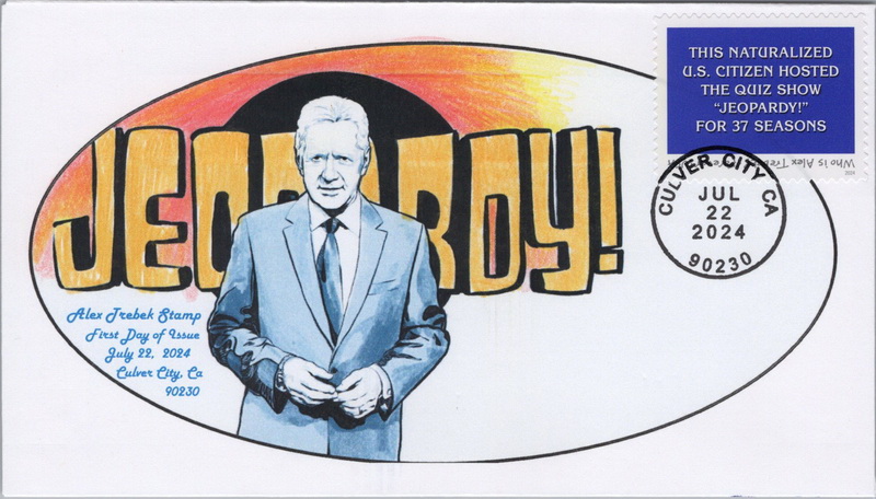 | | Cachetmakers Contest - Winners | | 6 | 5907 | 7/22/2024 | Alex Trebek; Wally Jr. Cachet; Category 02: Hand-Colored/Hand-Painted, Printed from Original Artwork; First Place | $30.00 |