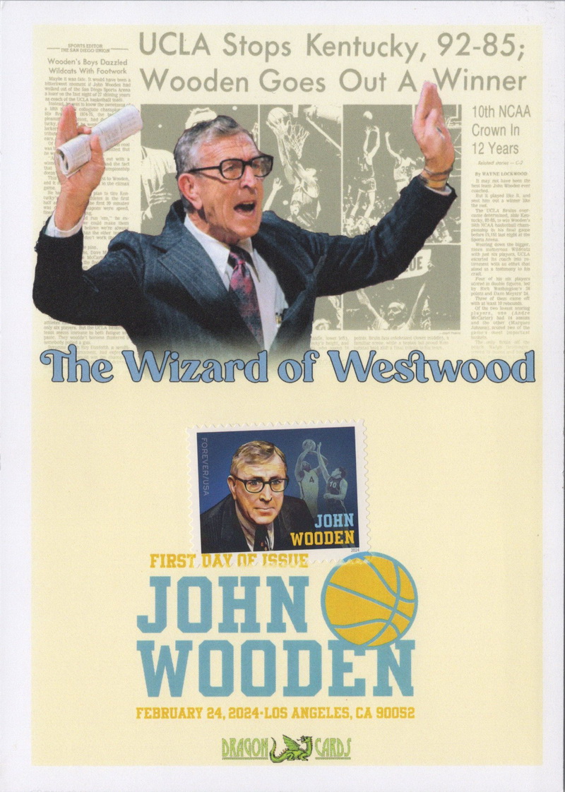 | | Cachetmakers Contest - Winners | | 8 | 5833 | 2/24/2024 | John Wooden; Dragon Cards; Category 04: Printed Artwork/Design, Multicolored; Second Place; 30 made (10 with DCP) | $20.00 |