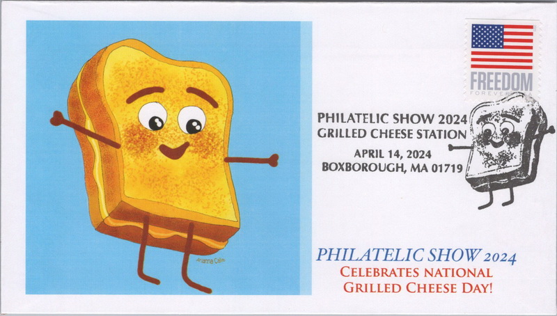 | | Cachetmakers Contest, Events | | 36 | Event | 4/14/2024 | Philatelic Show 2024; Calle, Arianna; Boxborough, MA Grilled Cheese Station; PHC | $10.00 |