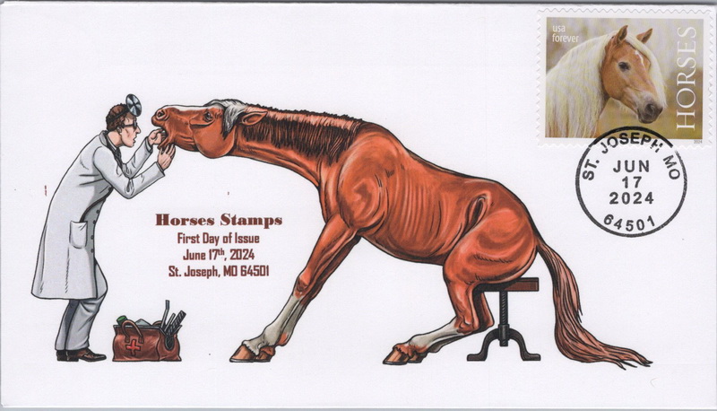 | | Cachetmakers Contest - Other Entries | | 110 | 5895b | 6/17/2024 | Horses, Set of 5; Wally Jr. Cachet; BHC; 40 sets made | $45.00 |