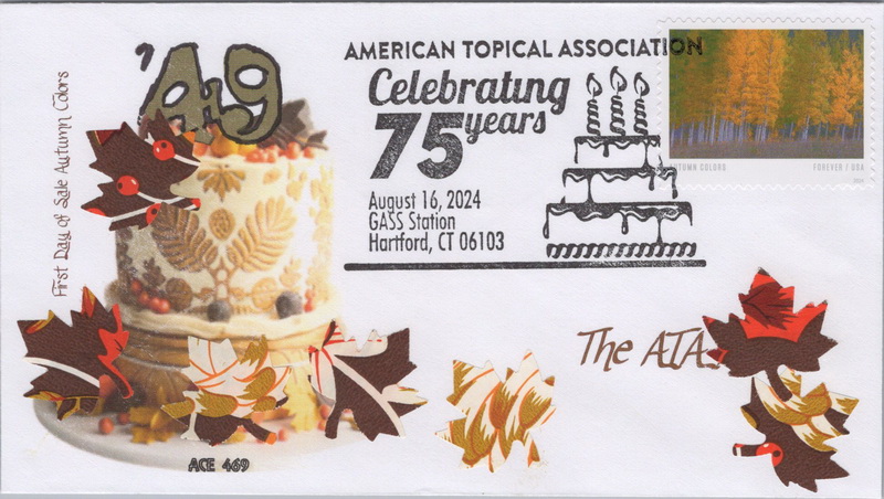 | | Cachetmakers Contest - Other Entries | | 127 | 5934 | 8/16/2024 | Autumn Colors, Grove of Trees with Purple shadowed Trunks Right; Richmond, Tricia (ACE 469); Hartford, CT GASS Station ATA 75 Years; PHC; 10 made | $20.00 |