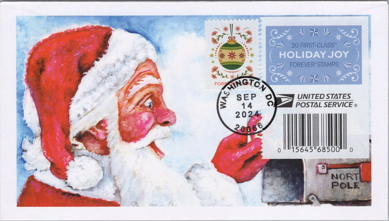 | | Cachetmakers Contest - Other Entries | | 138 | 5943 | 9/14/2024 | Holiday Joy, Green Round Ornament and Pink Flowers; AFDCS Court of Honor; #44, Tom Mueller; BHC with booklet selvage | $15.00 |