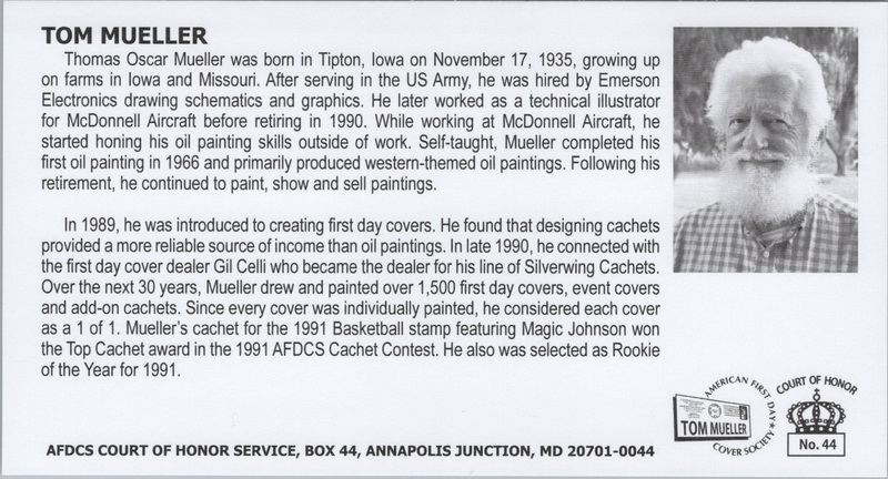 | | Cachetmakers Contest - Other Entries | | 139 | 5944a | 9/14/2024 | Holiday Joy, Set of 4; AFDCS Court of Honor; #44, Tom Mueller; DCP; Tom Mueller | $50.00 |