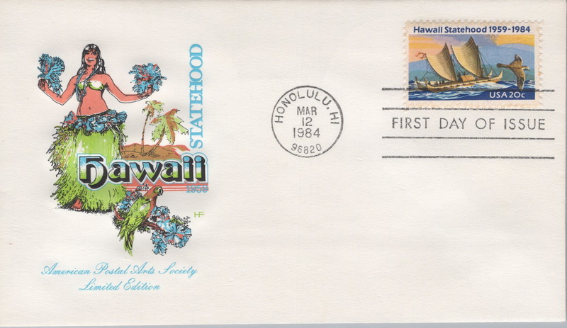 | | American Postal Arts Society | | 164 | 2080 | 3/12/1984 | Hawaii Statehood; American Postal Arts Society | $8.00 |