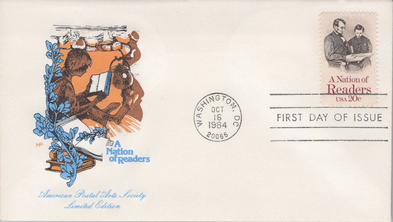 | | American Postal Arts Society | | 180 | 2106 | 10/16/1984 | Nation of Readers, Abraham Lincoln; American Postal Arts Society | $8.00 |