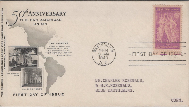 | | ArtCraft | | 216 | 0895 | 4/14/1940 | Pan-Am Union, 50 Years; ArtCraft; MNL; SEV-3, black, with Phoenix Ins text on left; no TM, TA | $20.00 |