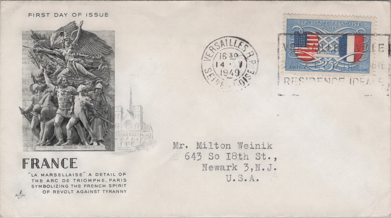 | | ArtCraft | | 239 | | 5/14/1949 | France USA-France Flags; ArtCraft; black, MC TA; SEV 915-2 - (S/A#1) w/o OCCUPIED NATIONS SERIES text | $15.00 |