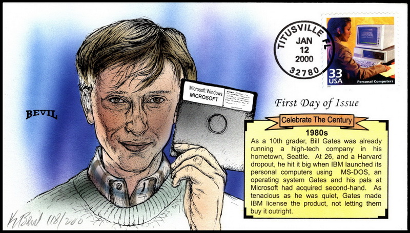 | | Bevil Cachets | | 263 | 3190n | 1/12/2000 | CTC - 1980's - Personal Computers; Bevil Cachets; HPD; Bill Gates; 200 made | $20.00 |