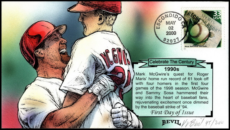| | Bevil Cachets | | 269 | 3191a | 5/2/2000 | CTC - 1990's - Baseball Records; Bevil Cachets; HPD; Mark McGwire; 200 made | $20.00 |