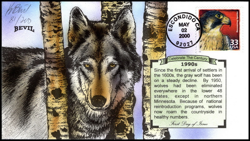 | | Bevil Cachets | | 276 | 3191g | 5/2/2000 | CTC - 1990's - Recovering Species; Bevil Cachets; HPD: Gray Wolf; 200 made | $20.00 |