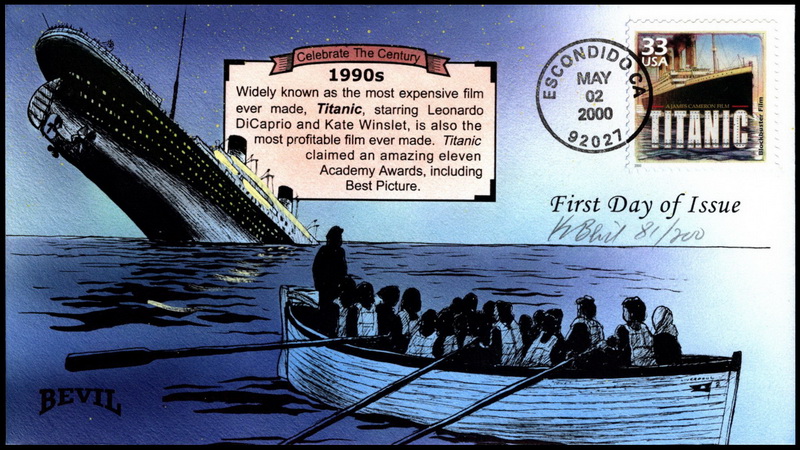 | | Bevil Cachets | | 281 | 3191l | 5/2/2000 | CTC - 1990's - Titanic; Bevil Cachets; HPD; 200 made | $20.00 |