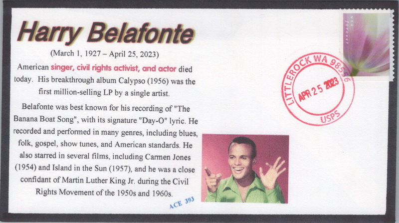 | | Dennis Gelvin, ACE 393 | | 289 | Event | 4/25/2023 | Gelvin, Dennis J.; Day of Death: Harry Belafonte; Littlerock, WA | $10.00 |