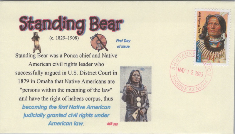 | | Dennis Gelvin, ACE 393 | | 290 | 5798 | 5/12/2023 | Chief Standing Bear; Gelvin, Dennis J.; UO Phoenix AZ Ahwtaukee Station; USPS CDS | $10.00 |