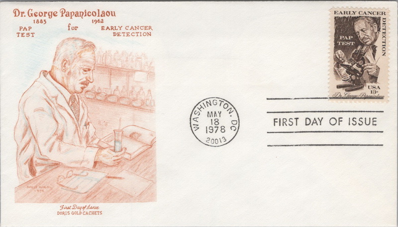 | | Doris Gold Cachets | | 306 | 1754 | 5/18/1978 | Dr. George Papanicolaou, Pap Test; Doris Gold Cachets; Design 1 | $8.00 |