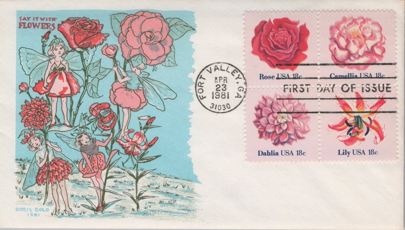 | | Doris Gold Cachets | | 317 | 1879a | 4/23/1981 | Flowers of America, Block of 4; Doris Gold Cachets | $10.00 |