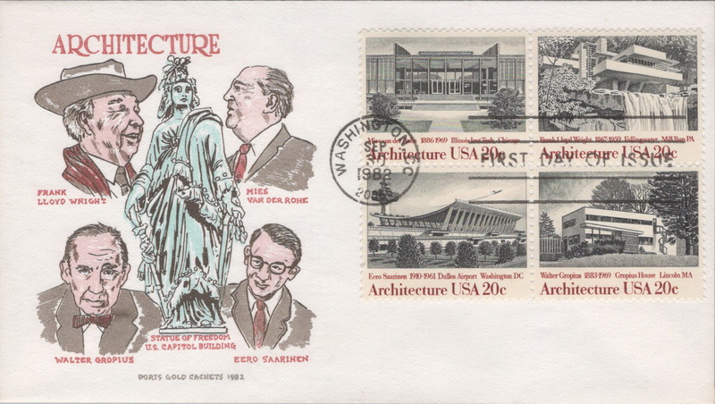 | | Doris Gold Cachets | | 327 | 2022a | 9/30/1982 | American Architecture, Block of 4; Doris Gold Cachets | $10.00 |
