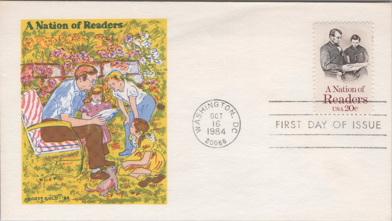 | | Doris Gold Cachets | | 351 | 2106 | 10/16/1984 | Nation of Readers, Abraham Lincoln; Doris Gold Cachets | $8.00 |