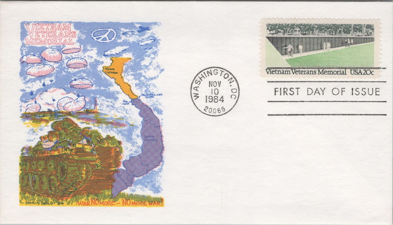| | Doris Gold Cachets | | 352 | 2109 | 11/10/1984 | Vietnam Veterans Memorial; Doris Gold Cachets | $8.00 |