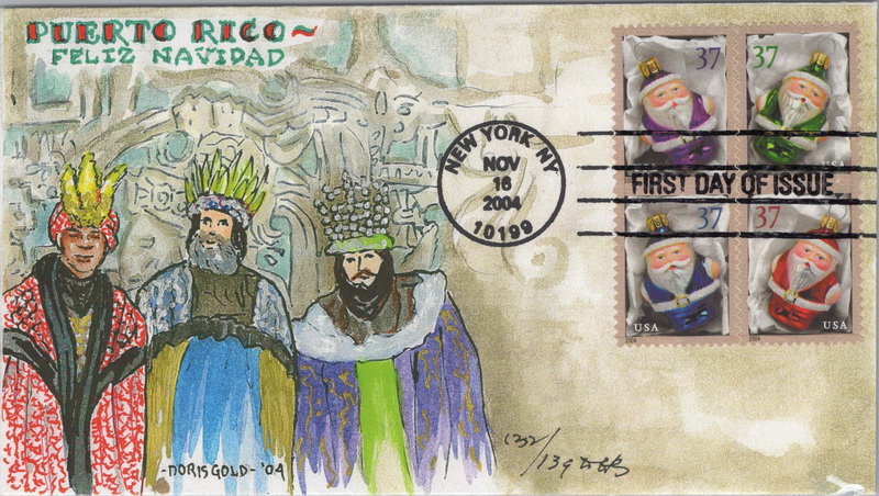 | | ___ | | 357 | 3886a | 11/16/2004 | Chrstimas 2004, Santa Ornaments, block of 4, die cut 11.5 x 11; Doris Gold Cachets; 139 made | $20.00 |