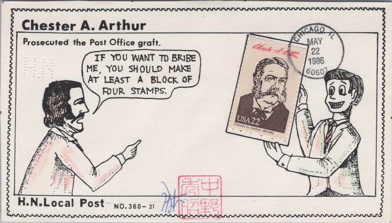 | | H. N. Local Post | | 462 | 2218c | 5/22/1986 | 1986 Presidents, Chester A. Arthur; H. N. Local Post; black; hcd; 40 made | $20.00 |