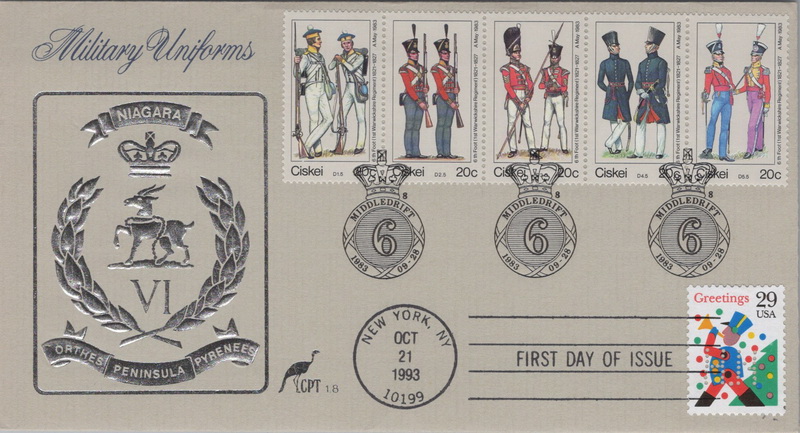 | | H. N. Local Post | | 477 | 2794 | 10/21/1993 | Christmas 1993, Toy Soldier; H. N. Local Post; FDOI with 'HN' perfin; on Ciskei 1983 Military Uniforms FDC; 1 made | $10.00 |