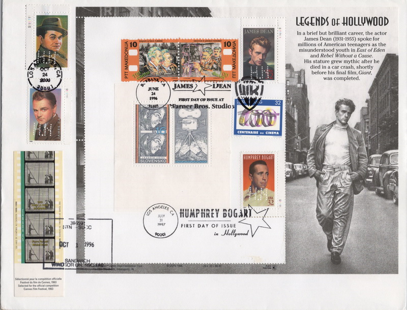 | | H. N. Local Post | | 480 | 3082 | 6/24/1996 | James Dean; H. N. Local Post; Combo foreign stamps; Dual FDOI #3152 Humphrey Bogart, #3046 Edward G. Robinson, and Canada 1996 Film Making stamps; All U.S. stamps with "H.N" perfin | $30.00 |