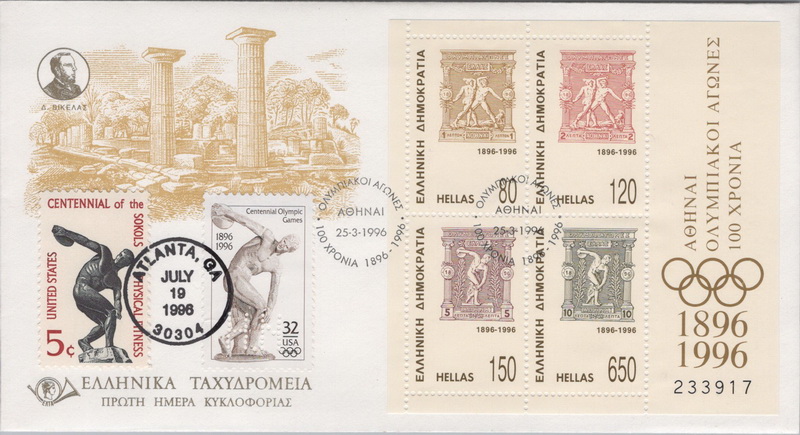 | | H. N. Local Post | | 481 | 3087 | 7/19/1996 | Centennial Olympic Discus; H. N. Local Post; FDOI with 'HN' perfin; on Greece 1996 Olympics FDC | $12.00 |