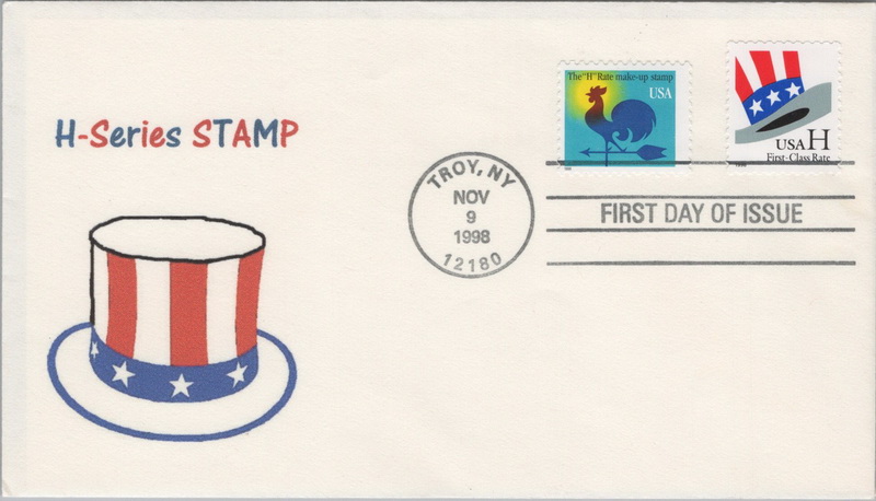 | | Triple W Cachets | | 510 | 3267 | 11/9/1998 | "H" Uncle Sam's Hat, SA, single, die cut 9.9; Triple W Cachets; HC; Add-On; 3 made | $10.00 |