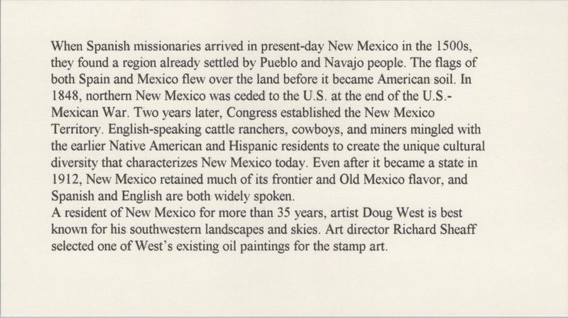| | Triple W Cachets | | 522 | 4591 | 1/6/2012 | Forever; New Mexico Statehood; Triple W Cachets; MC; with enclosure; 6 made | $10.00 |