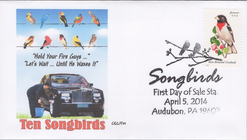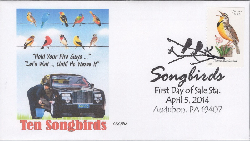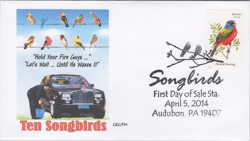 | | Peter McClure | | 592 | 4891a | 4/5/2014 | Song Birds, Set of 10; CEC/FM; First Day of Sale - Audubon, PA; PHC | $100.00 |