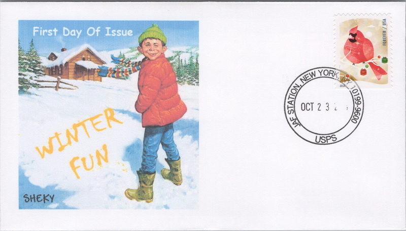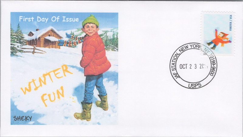 | | Peter McClure | | 624 | 4940a | 10/23/2014 | Christmas 2014, Winter Fun, set of 4, large; Sheky; UO New York, NY JAF Station; USPS CDS | $50.00 |