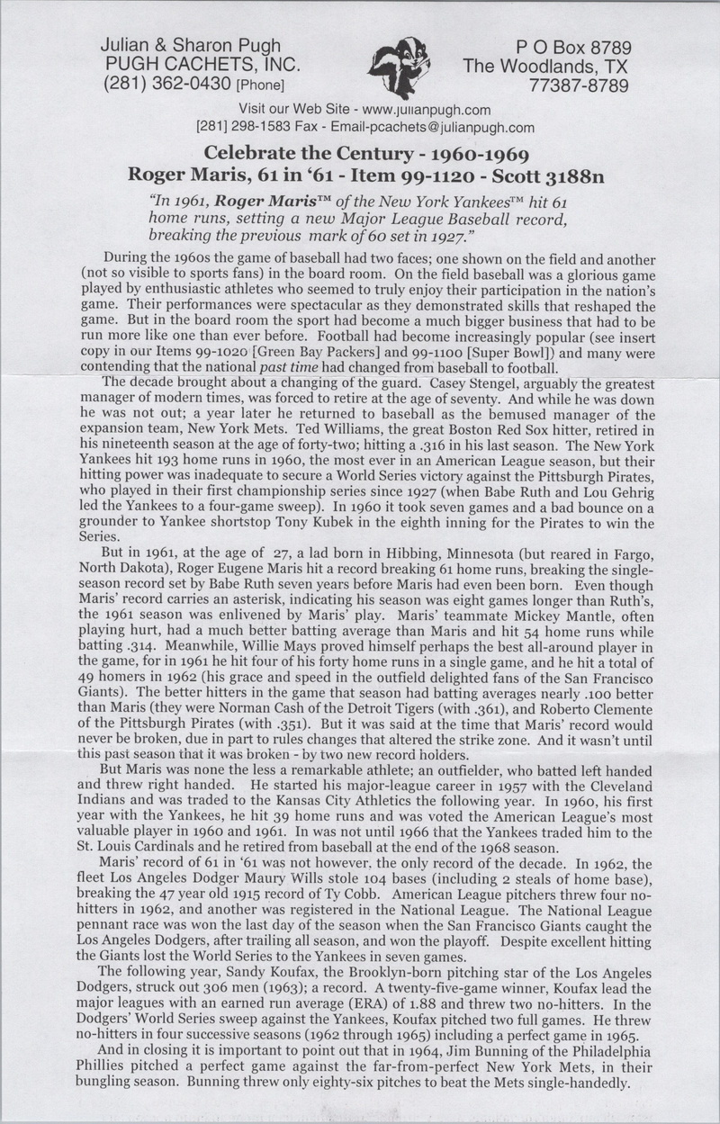 | | Julian Pugh | | 658 | 3188 | 9/17/1999 | Celebrate the Century - 1960's; Pugh, Julian; HPD, Set of 15 | $240.00 |