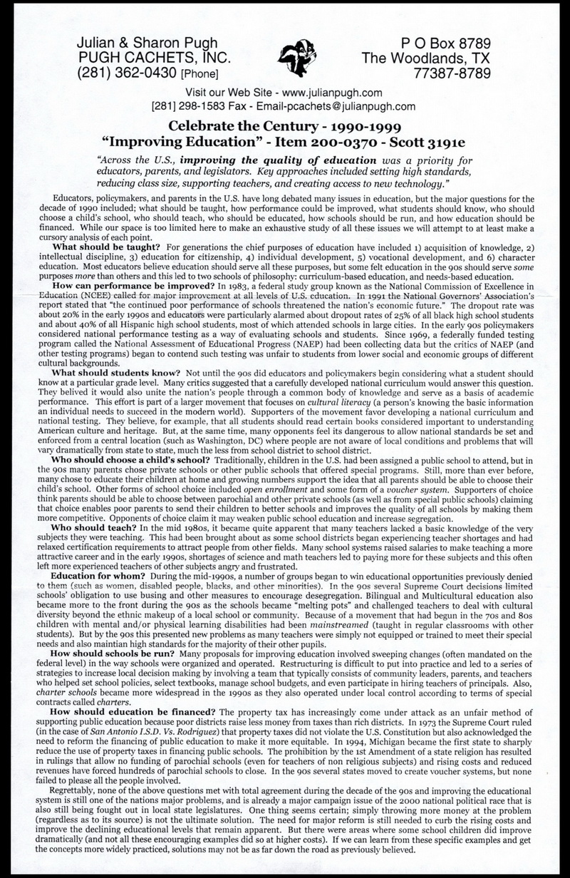| | Julian Pugh | | 665 | 3191e | 5/2/2000 | CTC - 1990's - Improving Education; Pugh, Julian; HPD; 89 made | $20.00 |