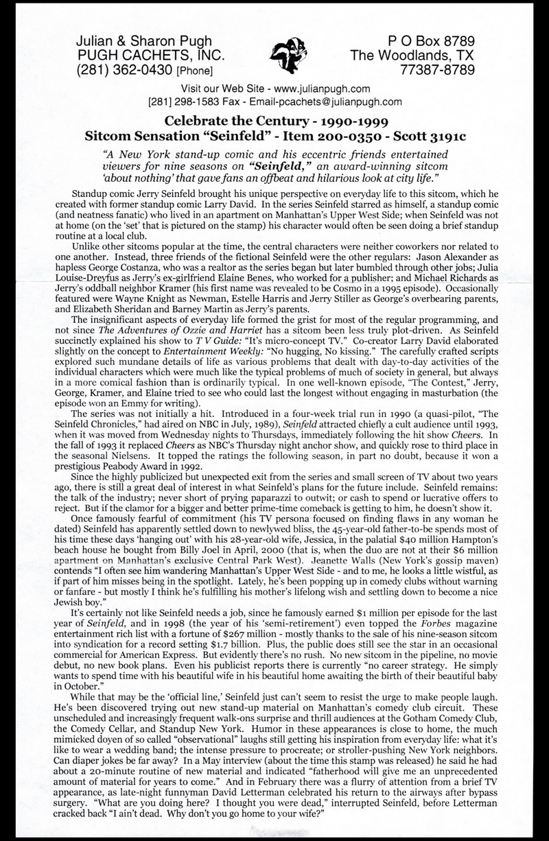 | | Julian Pugh | | 669 | 3191c | 5/2/2000 | CTC - 1990's - Seinfeld; Pugh, Julian; HPD; 107 made | $20.00 |