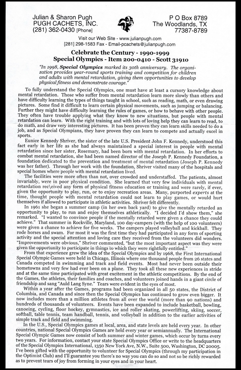 | | Julian Pugh | | 670 | 3191i | 5/2/2000 | CTC - 1990's - Special Olympics; Pugh, Julian; HPD; 86 made | $20.00 |