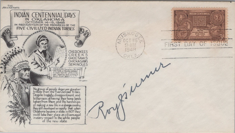 | | Autographs - Famous People | | 697 | 0972 | 10/15/1948 | Indian Centennial; Aristocrats; M20; Autographed by Roy J. Turner, Oklahoma Governor 1947-51 | $25.00 |