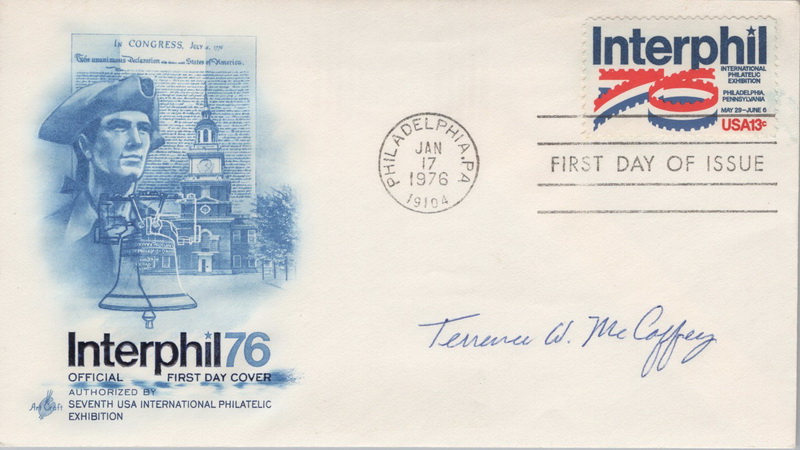 | | Autographs - Philatelic | | 705 | 1632 | 1/17/1976 | Interphil '76; ArtCraft; Signed by Terrence McCaffrey, Art Director of USPS Stamp Development | $15.00 |