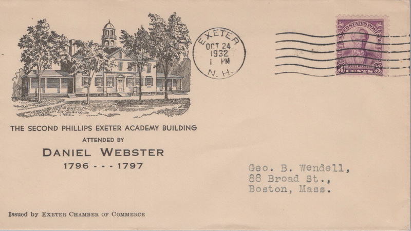 | | 1930s | | 773 | 0725 | 10/24/1932 | Webster Sesquicentennial; Exeter Chamber Of Commerce; P4; black; Exeter, NH; 1PM MC TA | $30.00 |