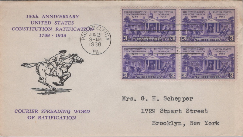 | | 1930s | | 801 | 0835 | 6/21/1938 | Constitution Ratification; Goldsmith Bros.; P23; black/purple; B4 MC TA | $40.00 |