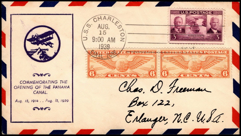 | | 1930s | | 811 | 0856 | 8/15/1939 | Panama Canal; UNK; PNL; purple; Airmail envelope; IA; Combo C19 pair | $40.00 |