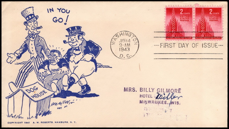 | | 1940s | | 840 | 0907 | 1/14/1943 | Allied Nations; Roberts, A. M.; MNL; blue; WWII Patriotic; Dog House; PR MC RSA | $12.00 |
