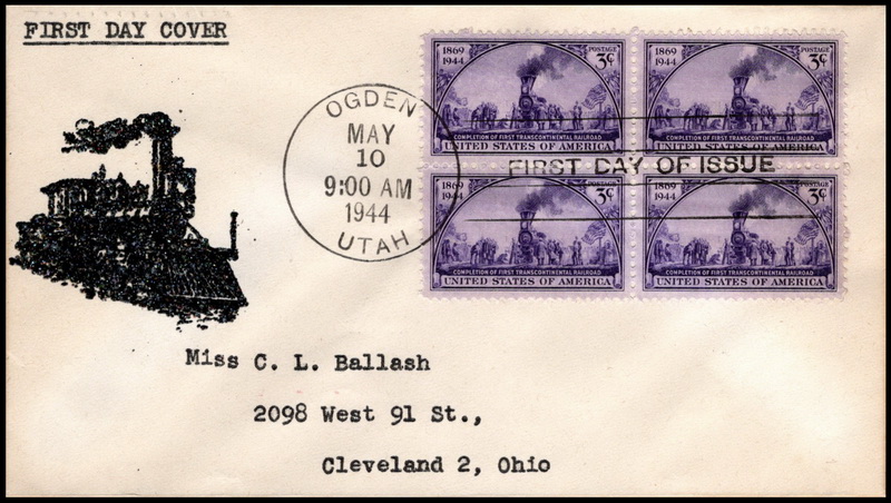 | | 1940s | | 843 | 0922 | 5/10/1944 | Railroad; Edwards, Phil; MNLZA; Add-On 2005; THM with sprinkles; Ogden UT; B4 HC TA | $8.00 |