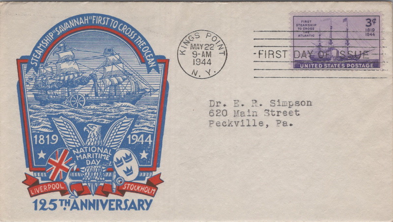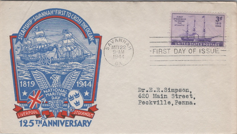 | | 1940s | | 849 | 0923 | 5/22/1944 | S.S. Savannah; Staehle; M6, Set of 2 - Kings Point NY and Savannah GA, MC TA | $20.00 |