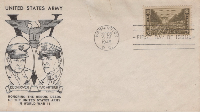 | | 1940s | | 863 | 0934 | 9/28/1945 | US Army; Fidelity; M68, Art by McIntyre | $10.00 |