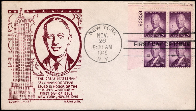 | | 1940s | | 869 | 0937 | 11/26/1945 | Alfred Smith; Zoo-Bay; M13; purple; UL PB4 #23353 HC UA; with NYCPO RSC on back | $20.00 |