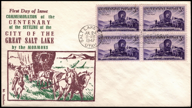 | | 1940s | | 897 | 0950 | 7/24/1947 | Utah Centennial; Sanders; M7; green purple; B4 MC UA | $10.00 |