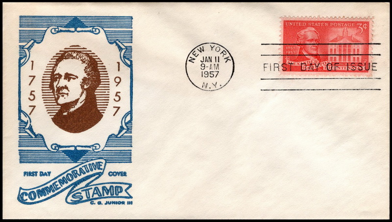 | | 1950s | | 926 | 1086 | 1/11/1957 | Alexander Hamilton; C. G., Jr. III; M10; 2 varieties; THM; blue/brown & black/orange; MC | $20.00 |
