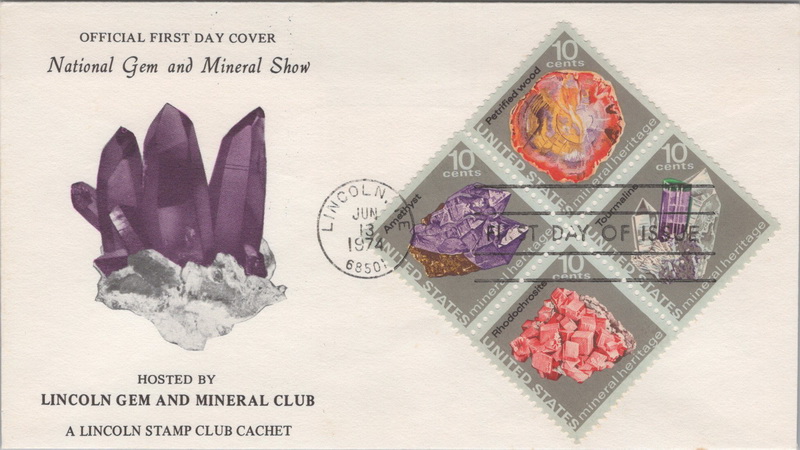| | 1970s | | 975 | 1541a | 6/13/1974 | Mineral Heritage, Block of 4; Lincoln Stamp Club | $20.00 |