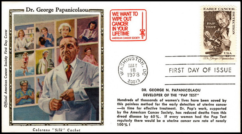 | | 1970s | | 986 | 1754 | 5/18/1978 | Dr. George Papanicolaou, Pap Test; American Cancer Society; Official cachet, prepared by Colorano | $15.00 |